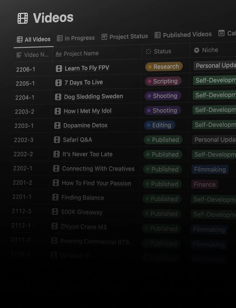 In Niklas’ eyes, film schools are dead. The traditional approach of only teaching about one part of the creative process never satisfied his vision for executing big-scale projects all by himself. That’s why after 6 years of meticulously developing his own creative workflow, Niklas made it his mission to help other people become better storytellers and filmmakers by teaching them about his best-kept secrets.